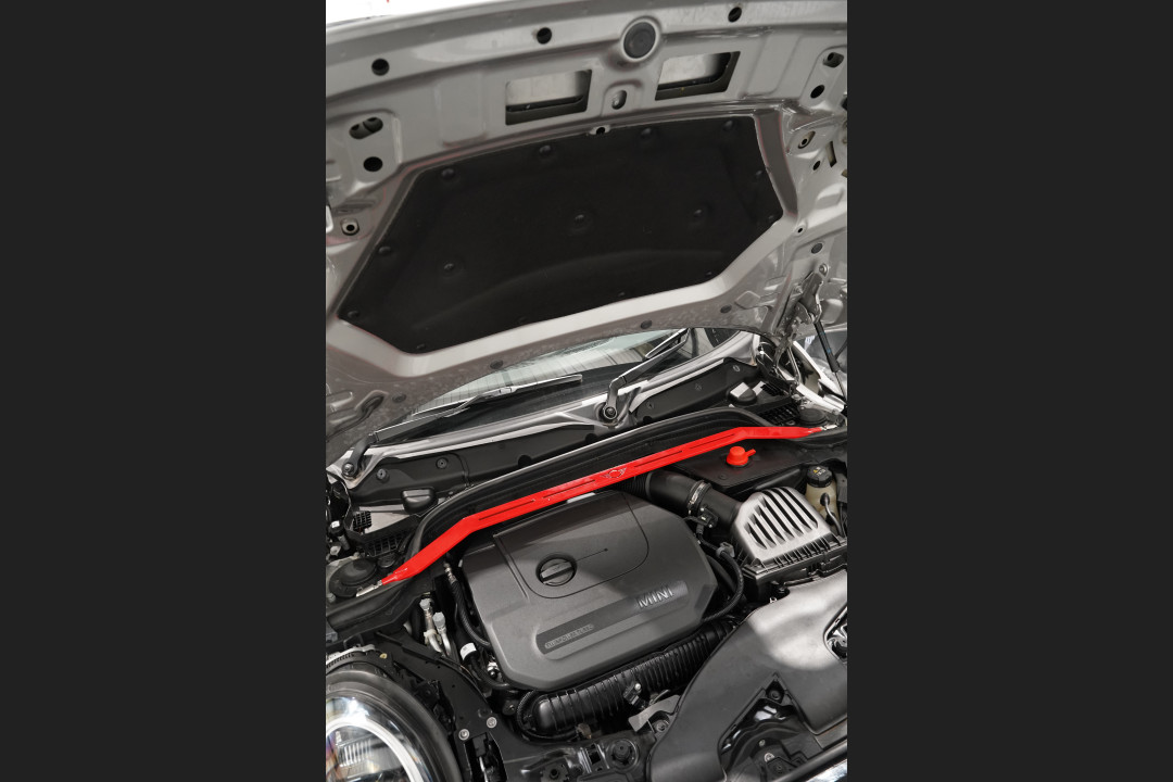 At RPM Performance, we are proud to offer a precision engineered rear boot strut brace for the Mini Cooper S / JCW F56 This strut brace is designed to significantly improve chassis rigidity and handling response by reinforcing the front strut towers. By reducing flex in the front suspension under hard cornering and acceleration, it enhances steering precision and overall vehicle stability.